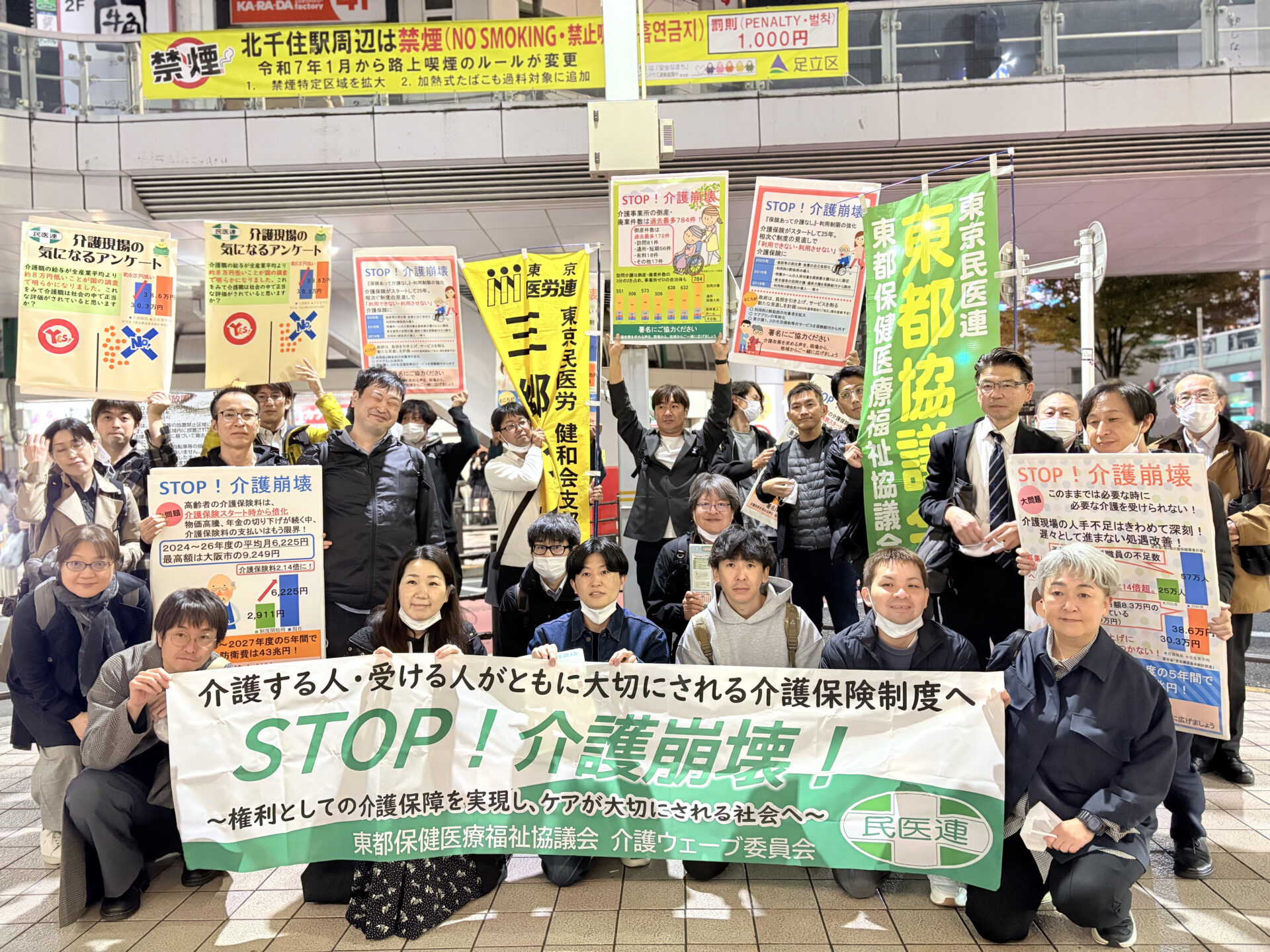 足立区の北千住駅前で「介護保険制度の抜本改善、大幅な処遇改善を求める請願署名」の署名活動を行いました