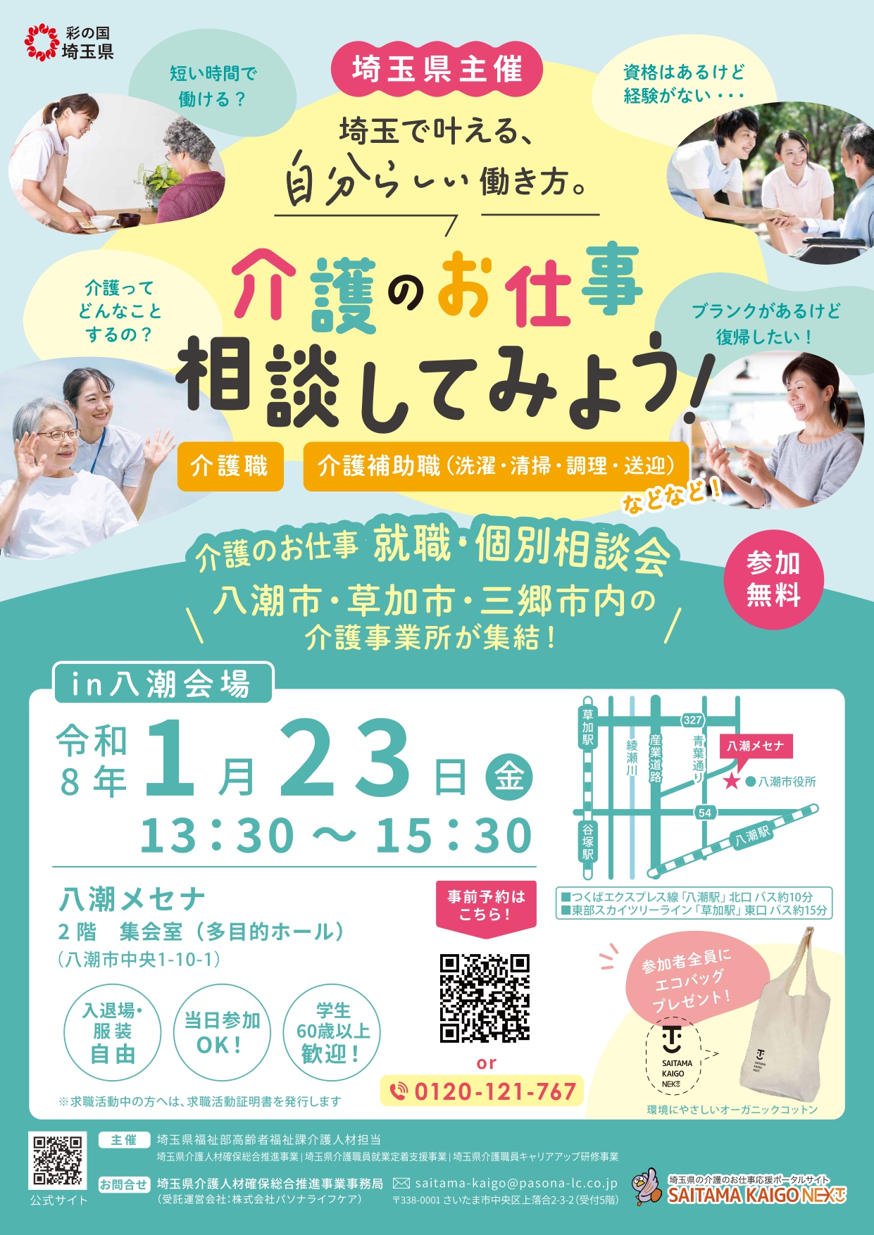 1/23【八潮会場(八潮市・草加市・三郷市)介護のお仕事就職・個別相談会】に参加します